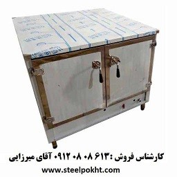 گرمخانه صنعتی یا دمکن برنج تک خانه و فر دمکن دو خانه به صورت گرمای غیر مستقیم غذا را گرم نگه می دارد.