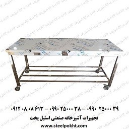 رویه میز کار استیل چرخدار از ورق استیل خشدار ۳۰۴ یا ۴۳۰ می باشد.