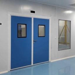 از درب دو لنگه اتاق تمیز در صنعت داروسازی، بیمارستان ها، کلینیک ها، اتاق های تمیز جراحی، کارگاه های تهیه غذا استفاده می شود. برای کاربردهای بهداشتی نیز دارای پوشش ضد باکتری در برابر انواع مختلف باکتری ها مانند استافیلوکوک، سالمونلا، اشریشیاکلی، لیستریا و غیره هستند. به این صورت که یک عمل ضد باکتری در شرایط محیطی جهت مقابله با باکتری ها ، قارچ ها و جلبک ها فعال می گردد. این پوشش ضد میکروبی دارای اثر دوگانه است: