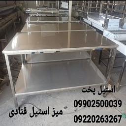 میز استیل قنادی و شیرینی پزی در کارگاه کیک پزی برای آماده سازی خمیر شیرینی مورد استفاده قرار میگیرد. در ابعاد ۱۹۰*۹۰ و ارتفاع ۹۰ سانت تولید می شود.