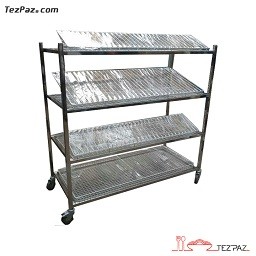 ابعاد استاندارد به طول ۱۳۰ سانتی متر عرض ۵۵ سانتی متر ارتفاع دستگاه با چرخ ۱۵۵ سانتی متر (دارای ۴ طبقه)