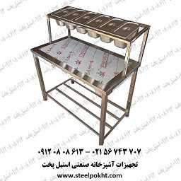 میز کار استیل سلف سرویس طرح تاپینگ پیتزا فست فود به صورت چرخ دار و دارای رف شیشه ای به همراه پیشخوان استیل طراحی می شود.