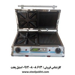 دستگاه ساندویچ ساز صنعتی ترکیبی تک درب به منظور پخت اسنک و ساندویچ در فست فود ها و کافی شاپ ها مورد استفاده قرار میگیرد .دستگاه ساندویچ ساز ترکیبی دارای دو صفحه تفلونی دو لایه نچسب می باشد.